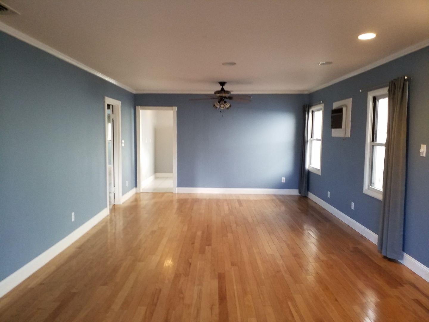 **The Dining/Living room combo is large with beautiful hardwood floors, plenty of windows and a fireplace sorry candles only