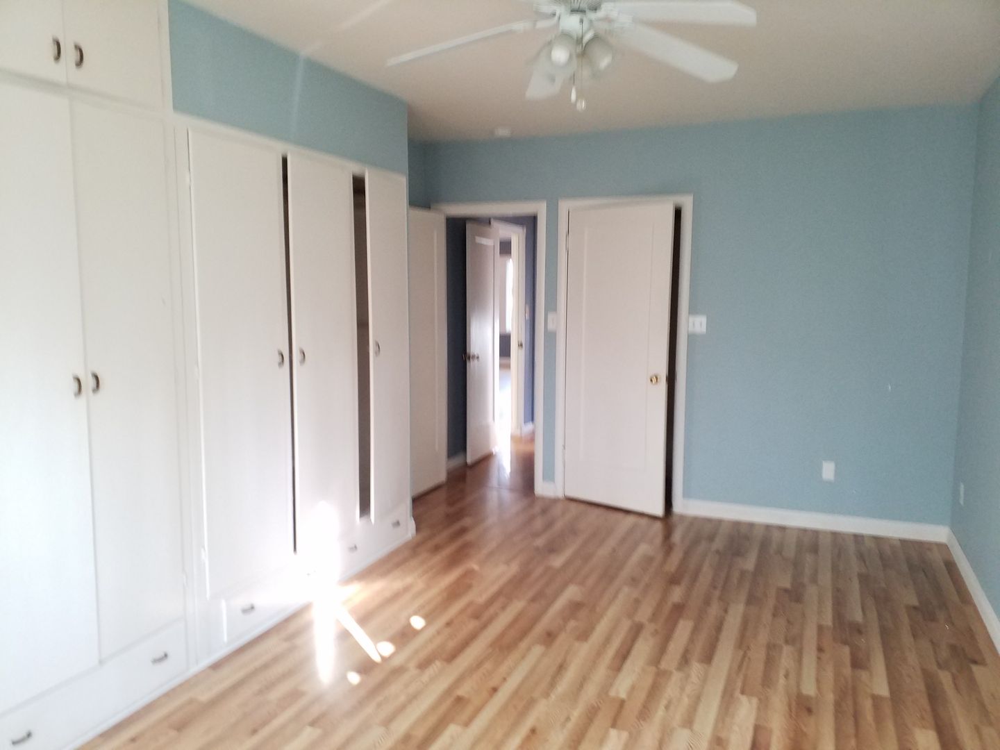 **Off the dining room is the hallway to the bedrooms and bathrooms. Both bedrooms are large with good closet space and both with hardwood floors. The master has built in cabinets for extra storage and off the master is a half bath with toilet and sink