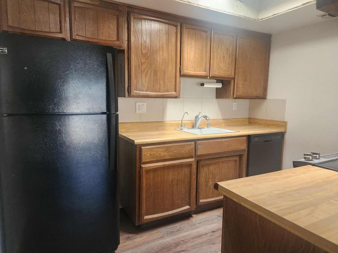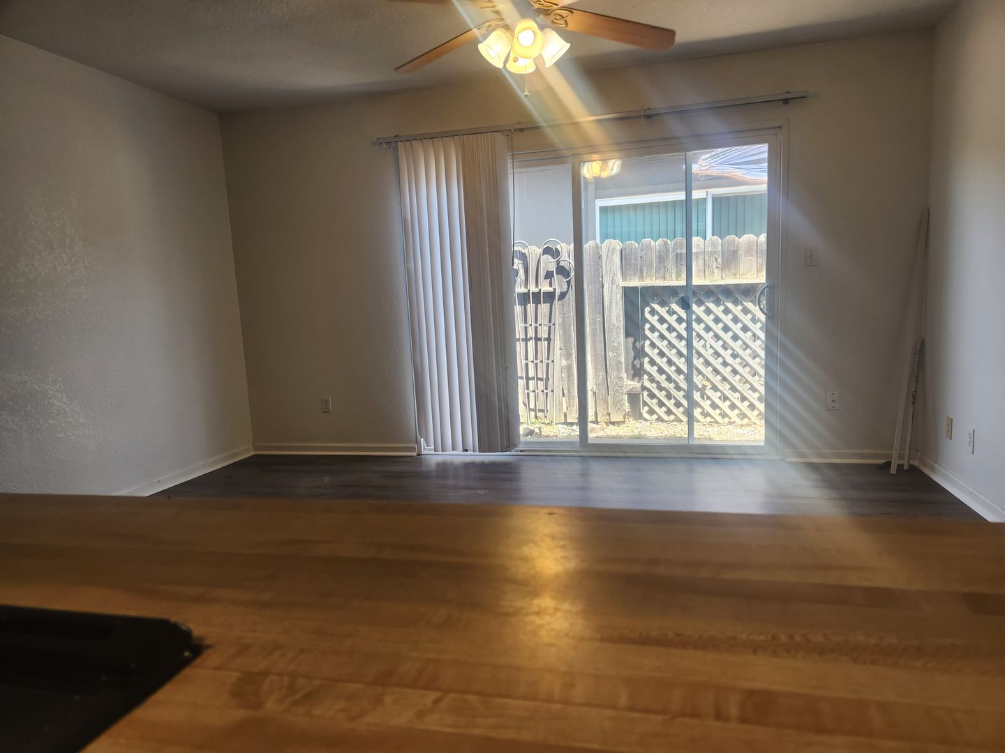 The living/Dining room has LVP and plenty of space and has a slider which opens up to the backyard.