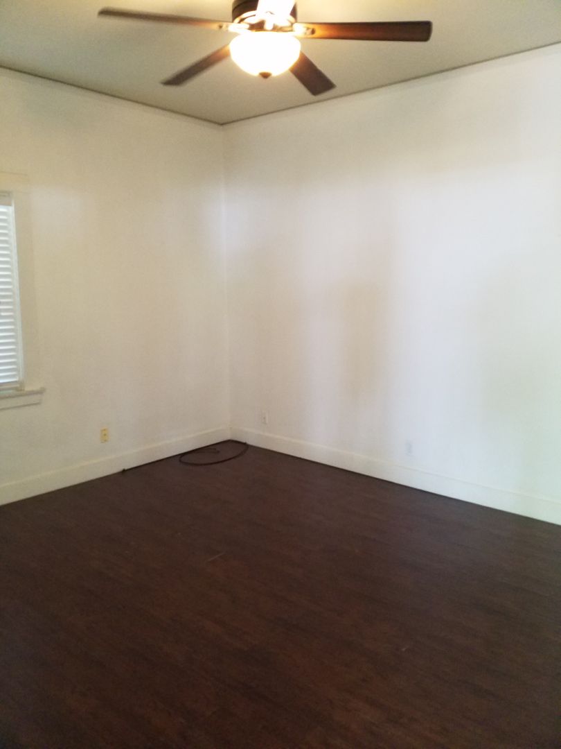 **The living area has hardwood planks with plenty of windows with a ceiling fan to help with hot days