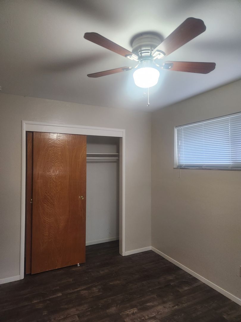 One bedroom has LVP flooring and the other has brand new carpet both have large closet and a ceiling fans to assist w movement of air