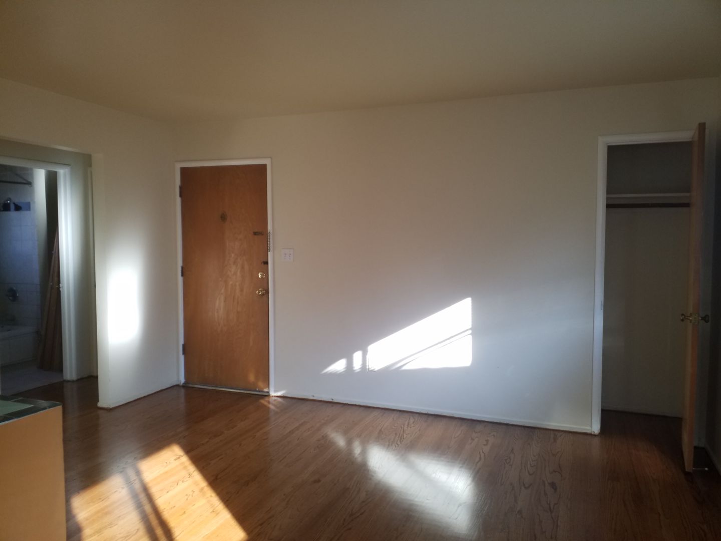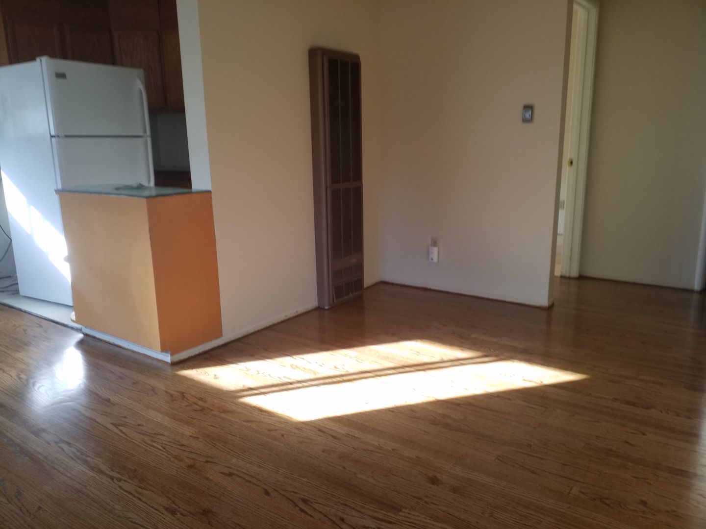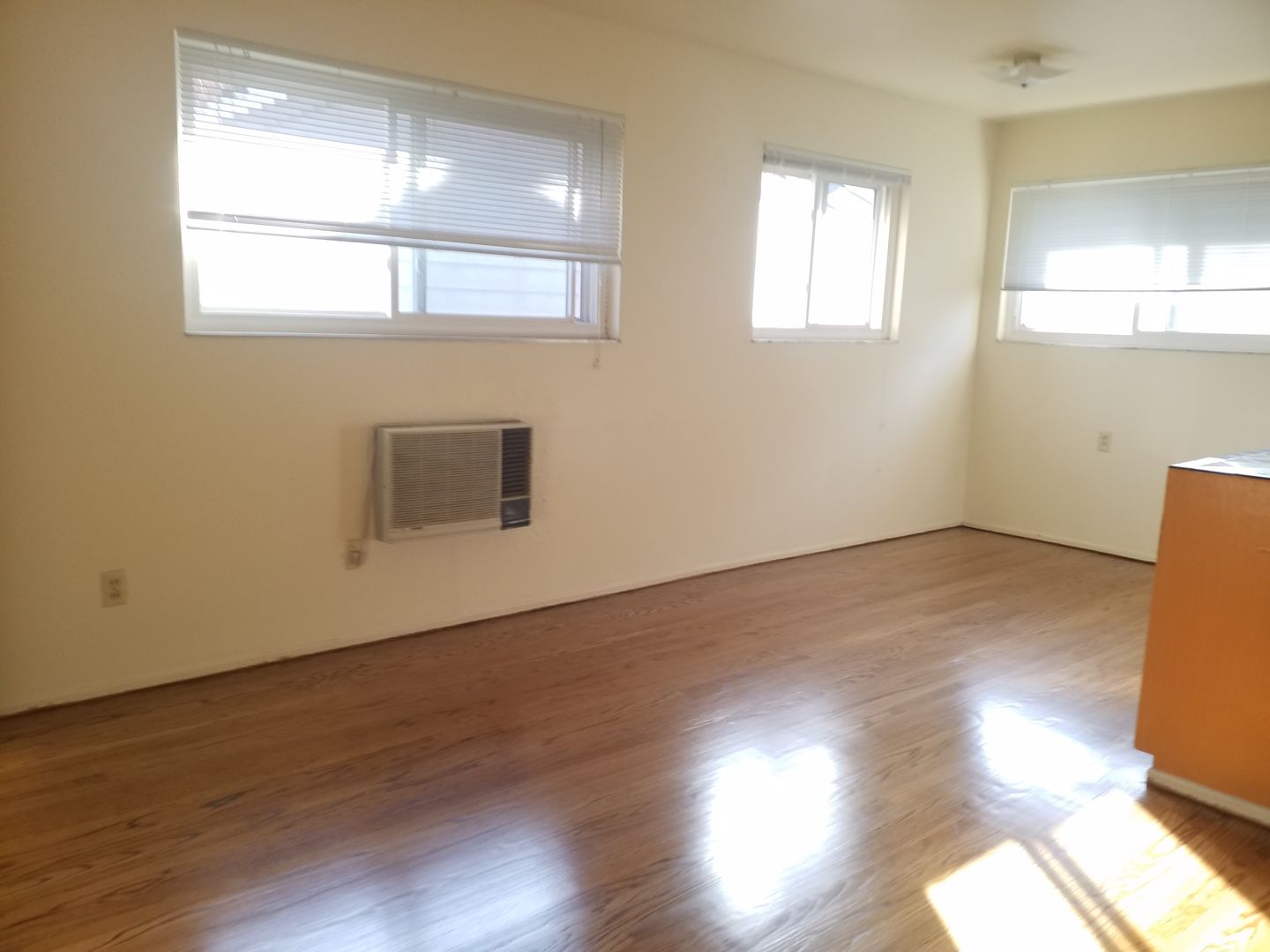 The living space has lots of windows as mentioned , hardwood floors